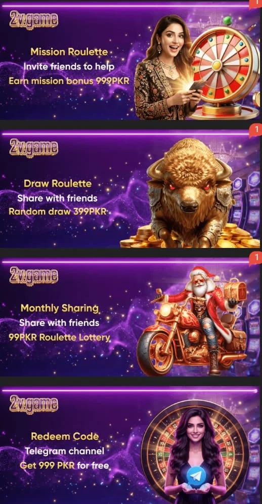 2V Game is one of the most popular games in all of Pakistan, which is downloaded by many players in Pakistan. This game is most popular and reliable, through which many casino experts consider this game as the library of other games. This game contains many other casino games, so players can enjoy several types of games on a single platform. This game offers various kinds of bonuses and daily rewards. This game offer welcome bonus to beginners and daily rewards to loyal players who log in daily to their accounts.