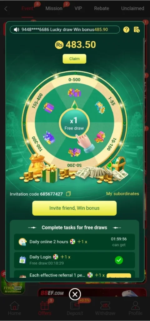 88EF Game is easy to play and free to download so download this game now from our website. This game offers uncountable features which are so beneficial and they also provide entertainment, like this game offer 24 hours’ active customer support services, interesting bonuses, exciting rewards and referral bonus through which you can invite your family and friends to this platform and get a chance to win more.