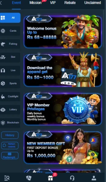A177 Game is a popular earning platform in Pakistan that offers various games such as casino games, sports games, lottery games, load games, card games, fishing games, and many other types of interesting games through which players can easily play any of the games according to their choice. Whenever you want to make more money or have more fun, this platform will provide you with all these opportunities.