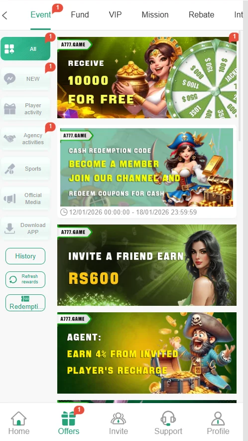 A777 Game offers a simple interface that everyone can easily adjust to; it also provides active customer support services to sort out the solution of the problem if a user faces. This game provides you with a real opportunity to make real money just by playing a simple game in your free time. This game offers a free download and an easy registration process through which you can complete your profile within 4 or 5 steps.