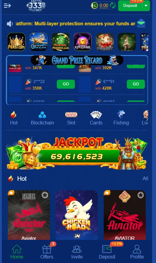J33 Bet Game gain popularity all over the world because It offers easy usage and free download option through which many users, especially in Pakistan, download this game and change their life just by playing simple games. This game is easily downloaded from our website and you can also download this game from play store it’s depending upon your choice.