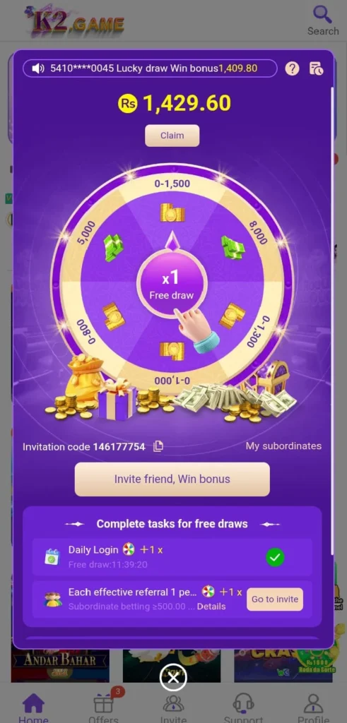 K2 Game contains a feature that offers various kinds of bonuses through which you can improve your earnings. This is one of the biggest secure and safe gaming environments. It offers a secure and smooth gaming environment in which you can play games without any fraud and fairness. It contains an encrypted system in which your personal data and financial data both become secure. If I talk about the interface of this game, then it offers a user-friendly interface which is suitable for any kind of user so you can easily adjust to this interface. So download this game now and get a chance to win.